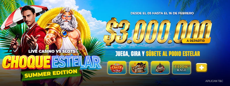El verano sigue caliente en Estelarbet, y no solo por las mesas en vivo 🔥. Desde el 5 al 16 de febrero, el casino online activó el Torneo Choque Estelar: Summer Edition, una promoción especial donde los jugadores compiten en distintos juegos de casino en vivo y tragamonedas, con premios reales en pesos chilenos.