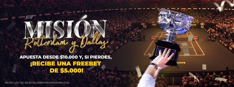 Estelarbet lanza la promo Misión Dallas y Rotterdam, ideal para los fanáticos del tenis: apuesta en el ATP de Dallas o Rotterdam y, si tu combinada resulta perdedora, recibes una Freebet de $5.000 para una segunda oportunidad.